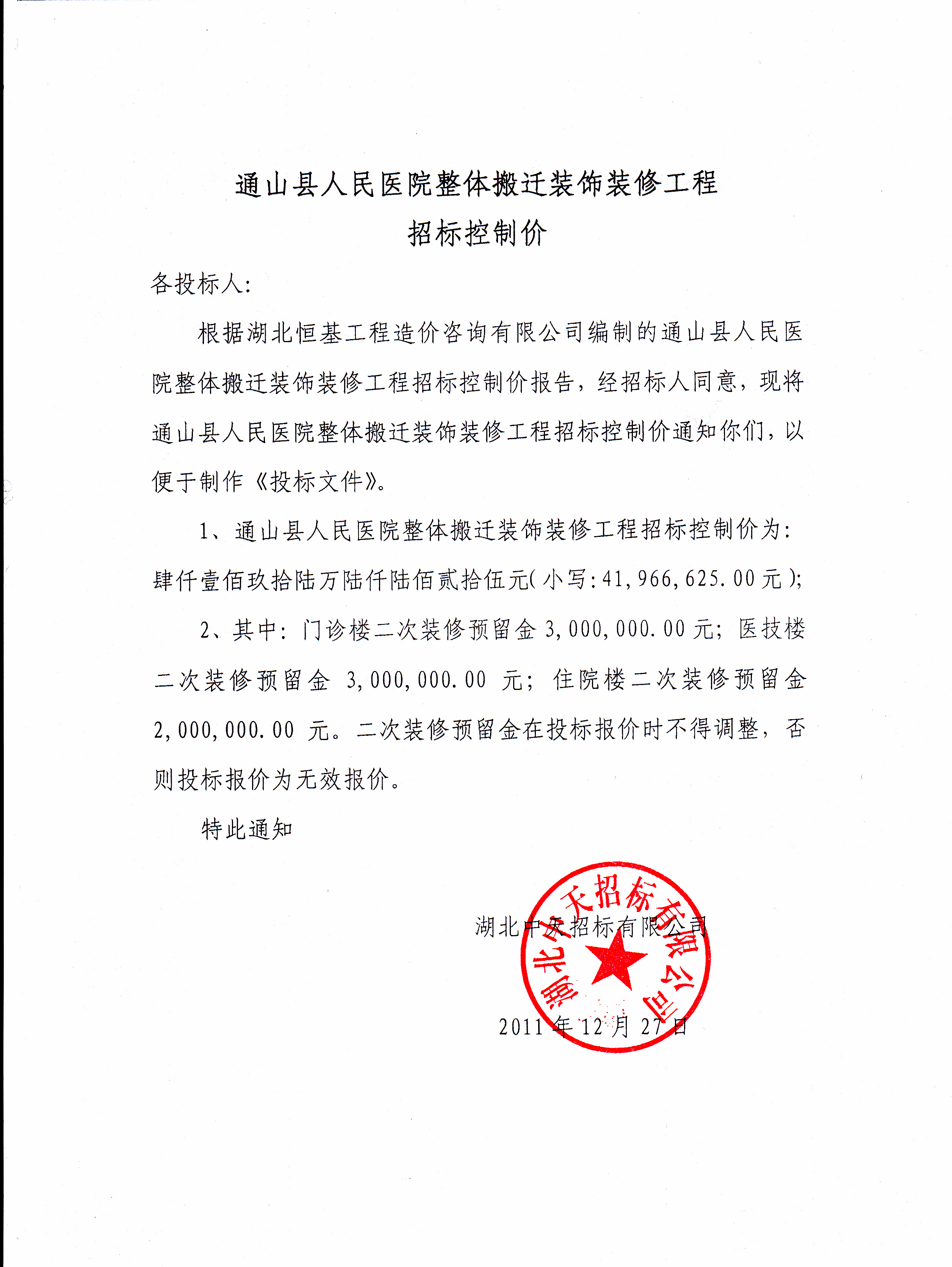 >> 通山縣人民醫(yī)院整體搬遷裝飾裝修工程